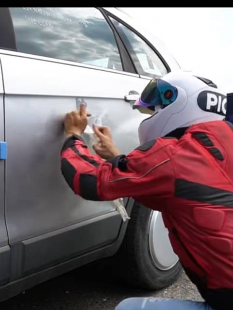 테이프 덴트 : 차에 찌그러진 부분 사방에 테이프 붙인 후 땡겨서 찌그러진 부분 펴내는 작업