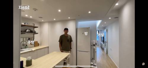 이런 긴 직사각형의 원룸인데 중간에 방 만들었다는 소리