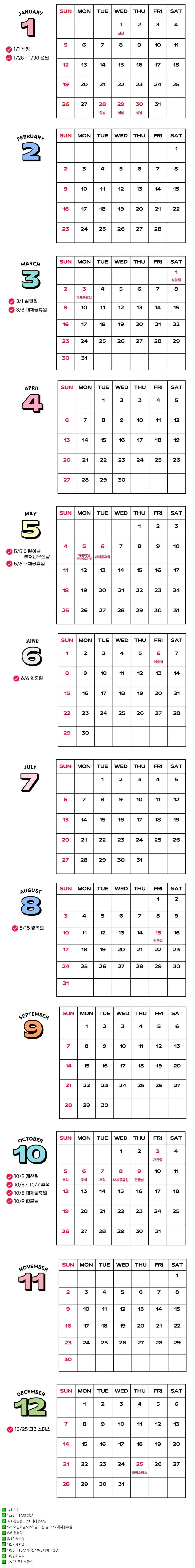 2025년 을사년 달력 (feat. 공휴일, 대체공휴일 정리) 14